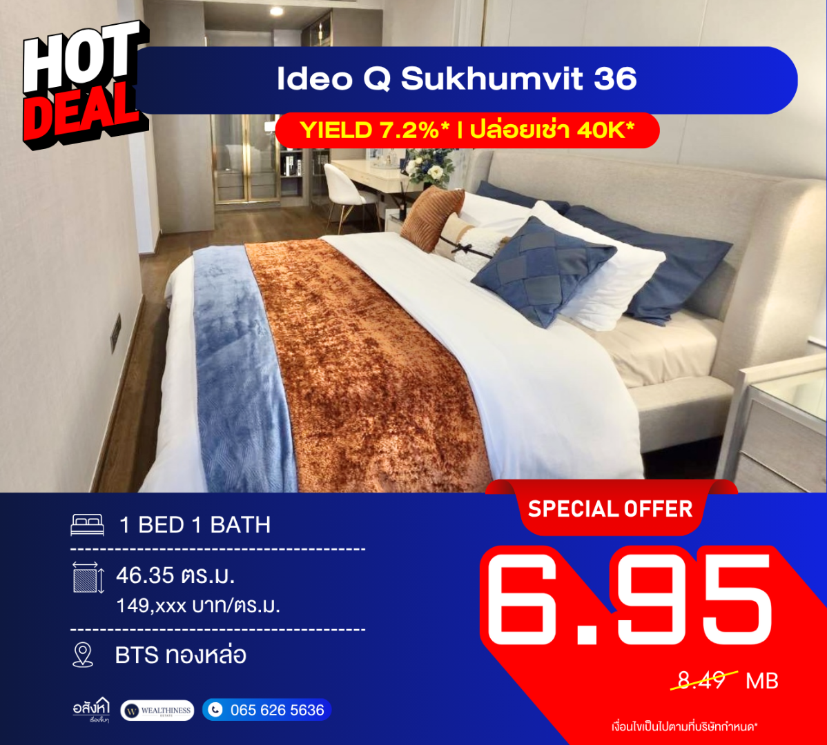 Ideo Q Sukhumvit 36 ราคาดีสุดในโครงการ ลดแรง! แต่งครบ พร้อมอยู่ เพียง 6.95 ลบ. วิวโล่ง ชั้นสูง พร้อมปล่อยเช่า 📞 092-690-5445