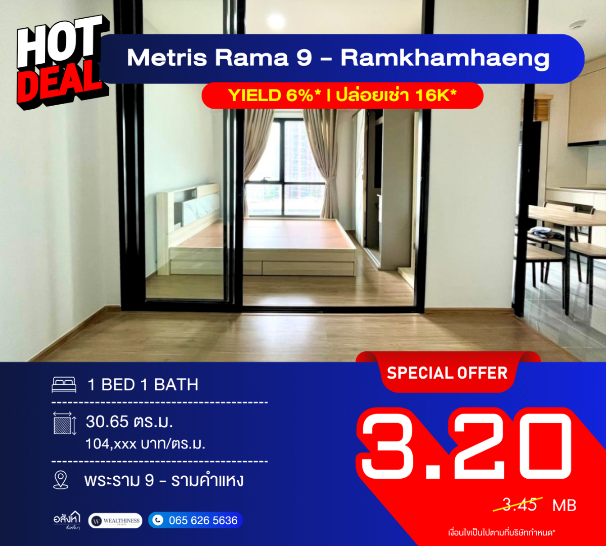 💸 Yield สูง 6%* จากค่าเช่า 16,000 บ./เดือน*