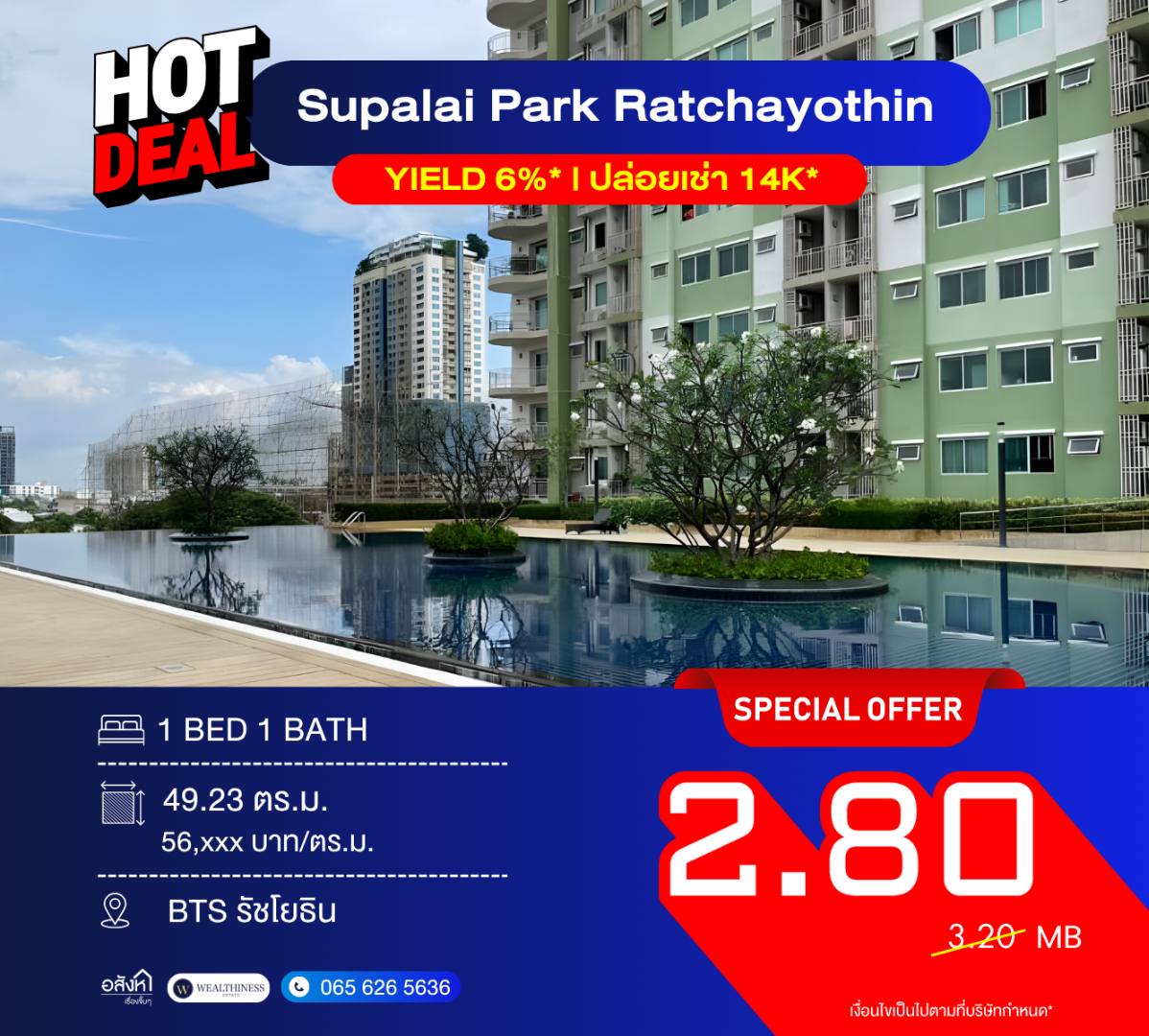 Supalai Park Ratchayothin ห้องพร้อมอยู่ แต่งครบ สภาพดีมาก เพียง 2.8 ลบ. ใกล้ BTS รัชโยธิน 📞 092-690-5445